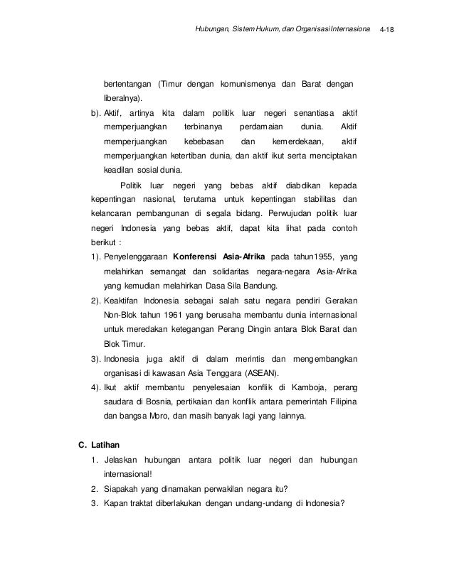 Demikian soal dan jawaban tentang politik luarnegeri bebas aktif indonesia. Menurut beliau, tujuan politik luar negeri indonesia, antara lain Sedangkan aktif adalah indonesia selalu ikut serta dalam. Asas politik luar negeri indonesia yang 'bebas aktif' pertama kali dikemukakan oleh mohammad hatta dalam keterangannya didepan badan pekerja 'komite nasional indonesia pusat' (knip) pada 2 september 1948.