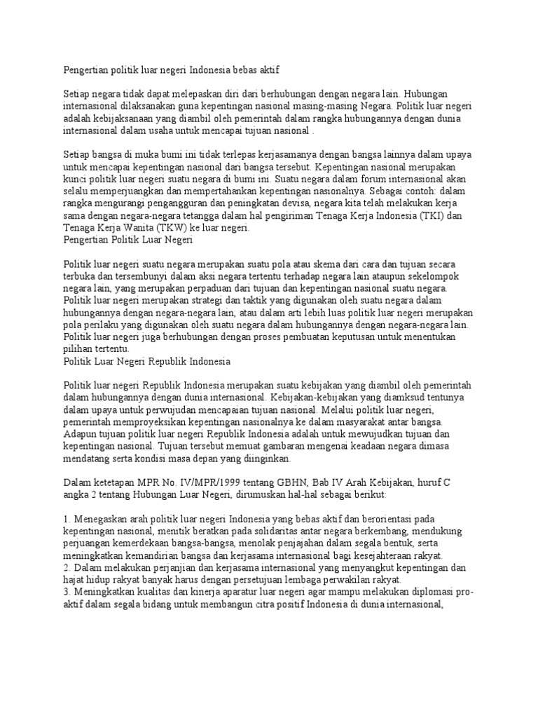 Masih Relevankah Politik Luar Negeri Bebas-Aktif Indonesia ... from herrellforcongress.com Indonesia bebas berhubungan dengan negara manapun. Politik luar negeri indonesia ialah bebas dan aktif, maka dari itu indonesia dapat menentukan sikap, keinginan dan arah untuk mencapai negara yang berdaulat dan merdeka secara penuh. Pengertian politik bebas aktif republik indonesia.
