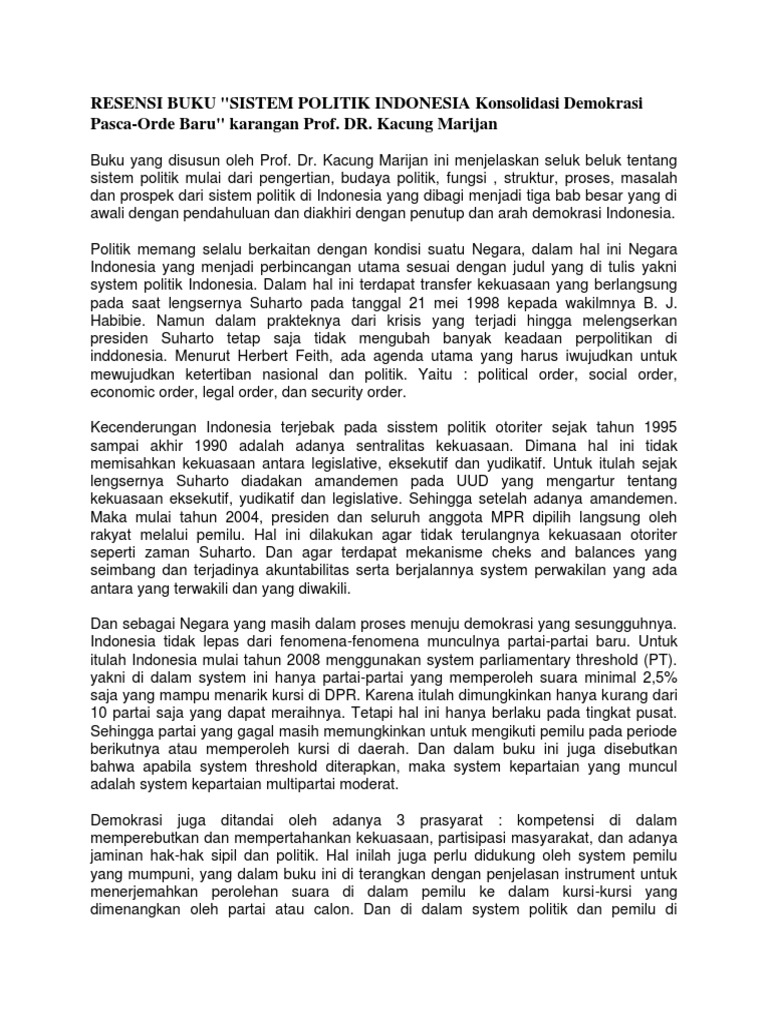 Download Buku Sistem Politik Indonesia Kacung Marijan Pictures. Let us know what's wrong with this preview of sistem politik indonesia by kacung marijan. Konsolidasi demokrasi pasca orde baru, kencana prenada media group, jakarta.